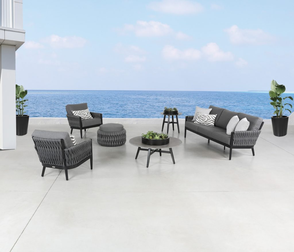 Named after the woven design elements of an outdoor garden trellis and resembling the comfort of your favorite cozy knit blanket, the new Trellis collection is not only visually captivating; it is as plush and luxurious as it looks. Trellis is highlighted with new Shadow SOL Rope™ woven onto a Sherwin-Williams® Black aluminum frame or new Zinc SOL Rope™ on a Tiger Drylac® White aluminum frame. Discover this collection in deep seating, sectional, and dining options to suit any outdoor entertainment needs.
