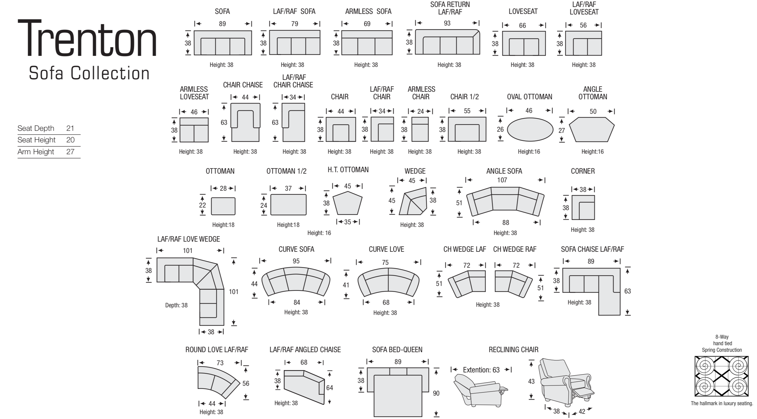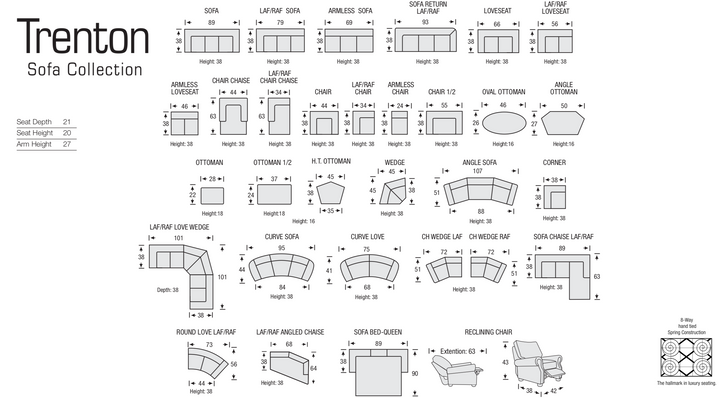 Sku Sheet: Some collections are also available to order as Sofa, Apartment Sofa, Chair, Loveseat, Ottoman, Chaise, and several Sectional configurations - please contact us for custom options and sizes.