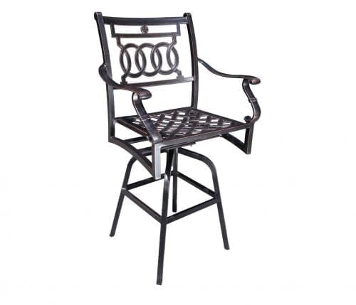 Elegant Cast Aluminum Patio Furniture, Durable Aluminum Frames, North American Brand Powder-Coat Paint. No Cushions Shown. The Dining Group Picture Cushions Shown 4023-0054 Mercer Crimson CabanaCoast® Exclusive.