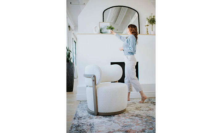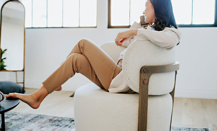 The Zara accent chair takes the classic tub chair and adds sophisticated richness. Her lush materials and curved modern silhouette are the perfect blends of comfort and style. Zara’s exposed wood frame adds a warm contrast to your design, and her brushed bronze accents are the final touch to her outfit. Her unique silhouette is the ideal accent piece to complete your space.