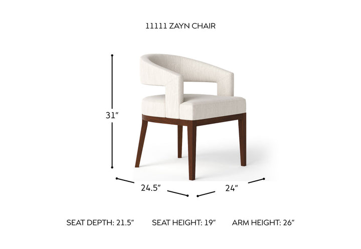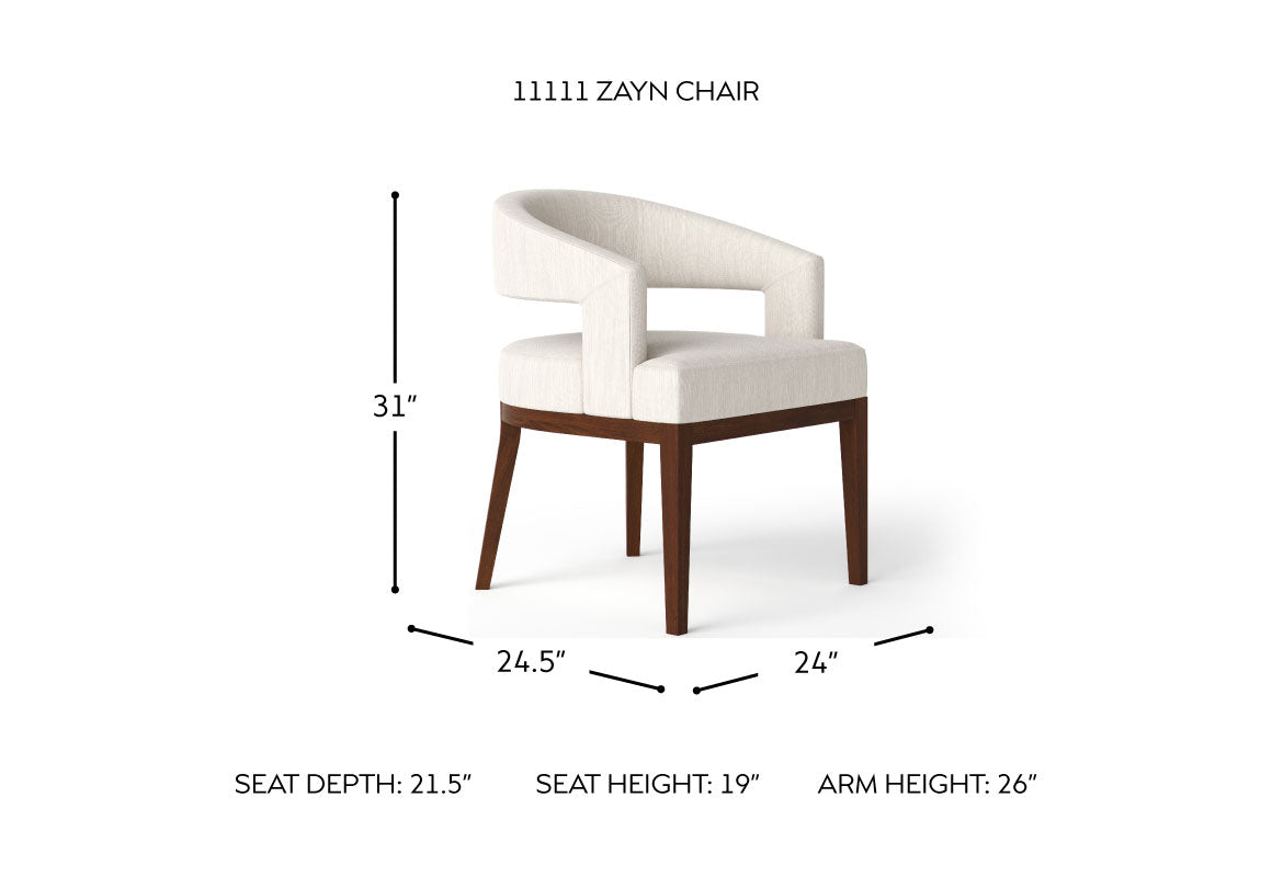 Elevate your home with the custom Zayn Chair, a masterpiece of comfort and style. This curved back chair takes the essence of the Zayn Collection and enhances it for a versatile seating option that fits effortlessly into any room. The chair’s silhouette is defined by its gracefully curved back, exceptional support, and a deep seat that encourages leisurely lounging. Built on a solid wood base, the Zayn Chair is as sturdy as stylish. Customize this curved back chair with your choice of fabric or leather and finishes, ensuring it effortlessly blends with your home’s decor.